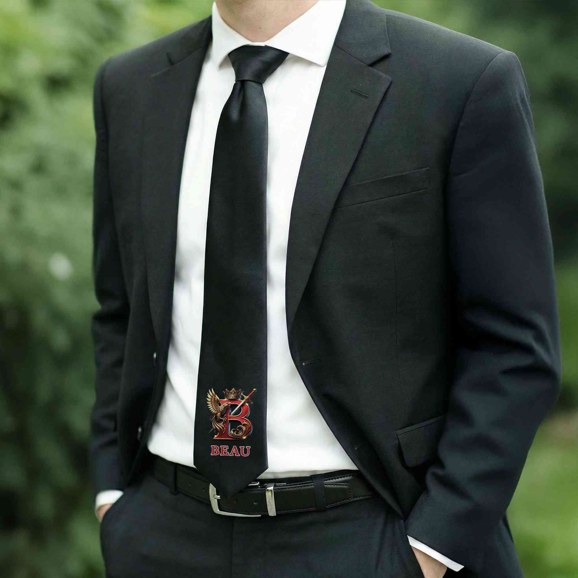 Bold Eagle & Sword Crown Design - The tie features a powerful eagle paired with a sword and crown alphabet motif, symbolizing strength, honor, and leadership. The sharp lines and balanced layout create a refined yet masculine style that stands out without looking flashy.