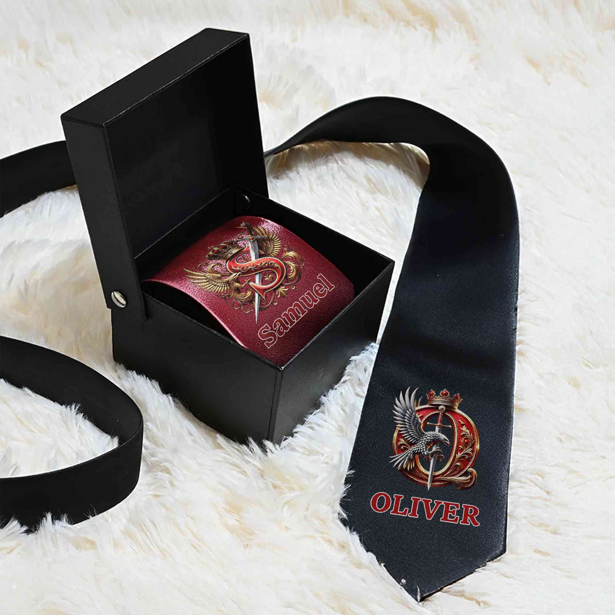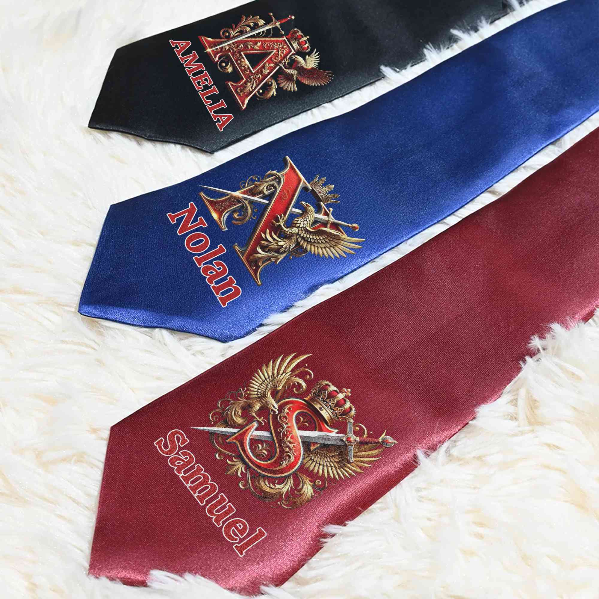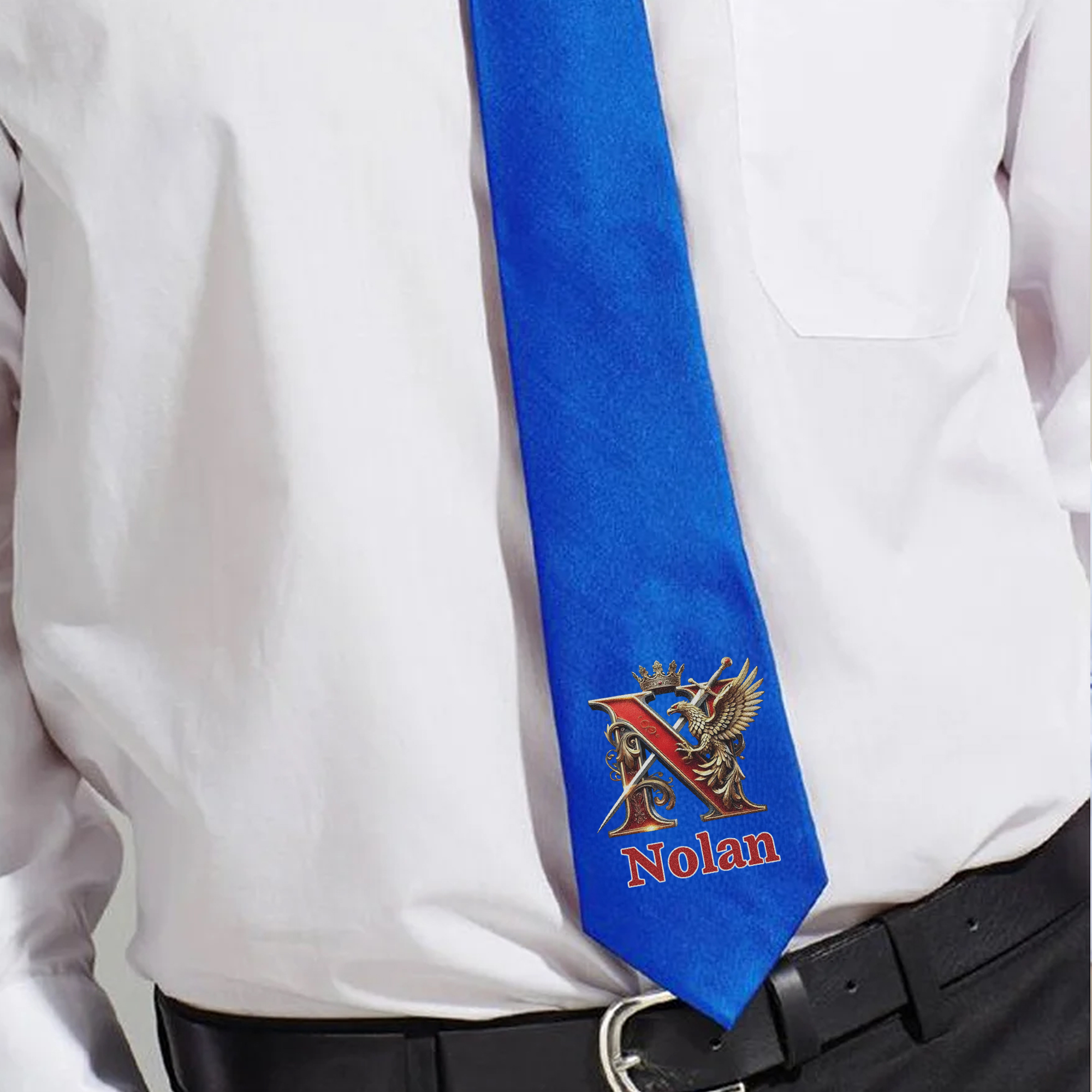 Personalized Name Eagle & Sword Crown Alphabet Tie with Box